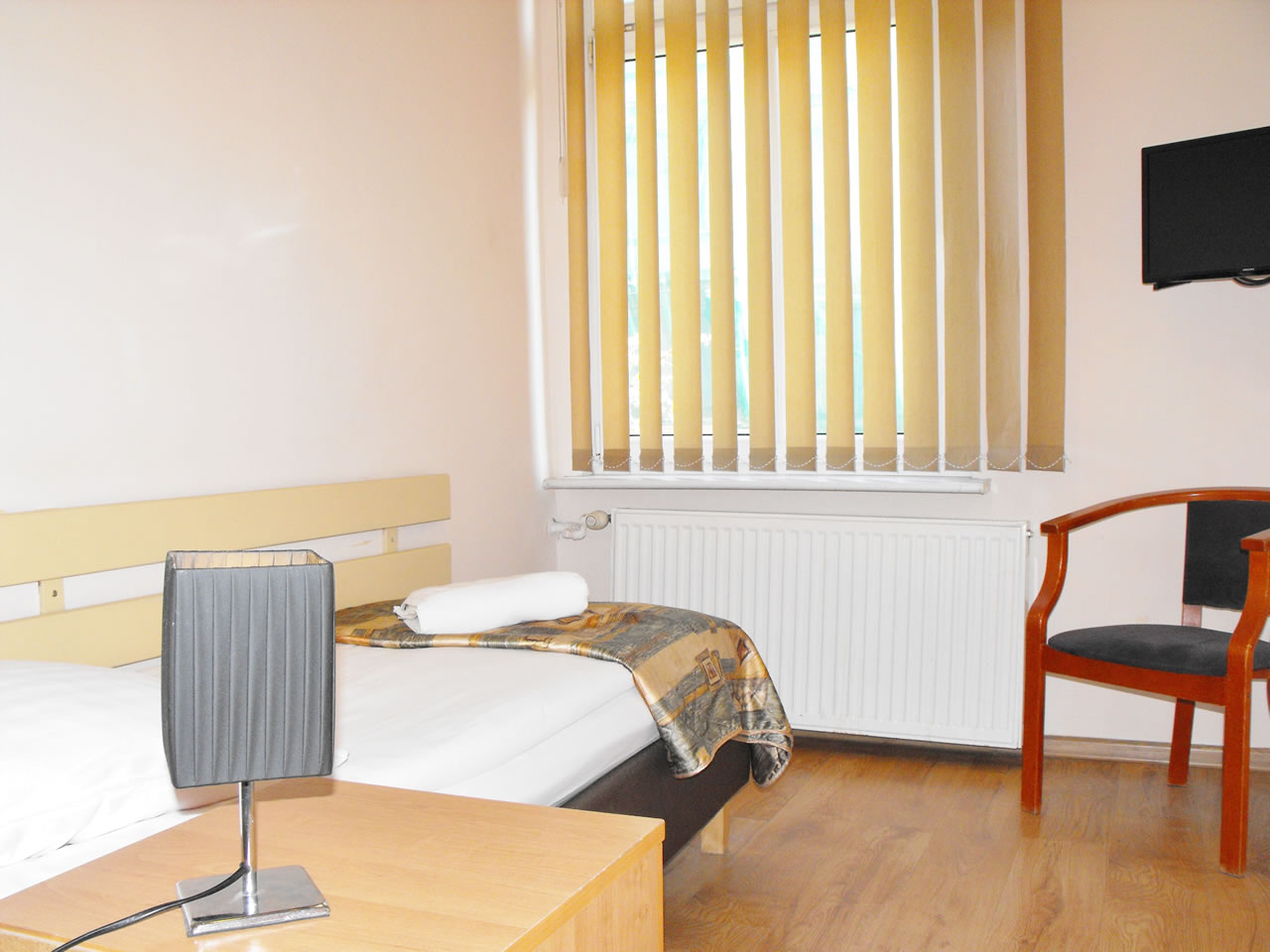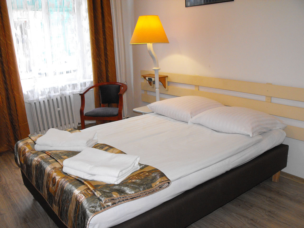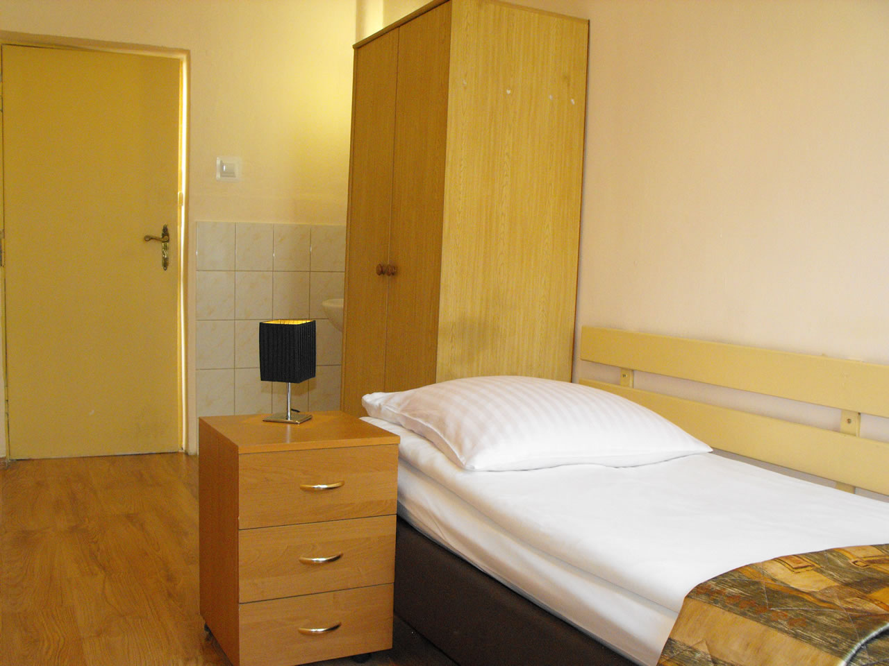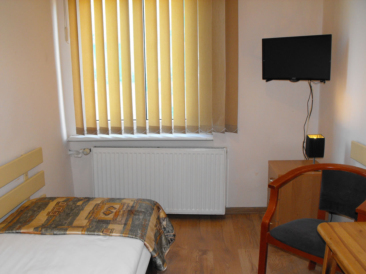znajdują się w nich łóżka 1-osobowe lub kanapo-tapczany, TV i radio, szafa, szafki nocne, krzesła. Na wyposażeniu również są ręczniki i mydło. Na korytarzach znajdują się łazienki ogólnodostępne dla kobiet i mężczyzn.